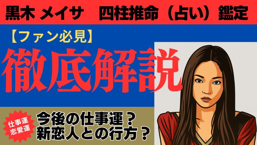今回は、女優の黒木メイサさんについて鑑定していきます。 黒木メイサさんは2012年に赤西仁さんと結婚し、2人のお子さんに恵まれました。しかし、2023年に離婚を発表し、11年の結婚生活に区切りをつけています。本名は「島袋さつき」現在37歳で、生活の拠... -
